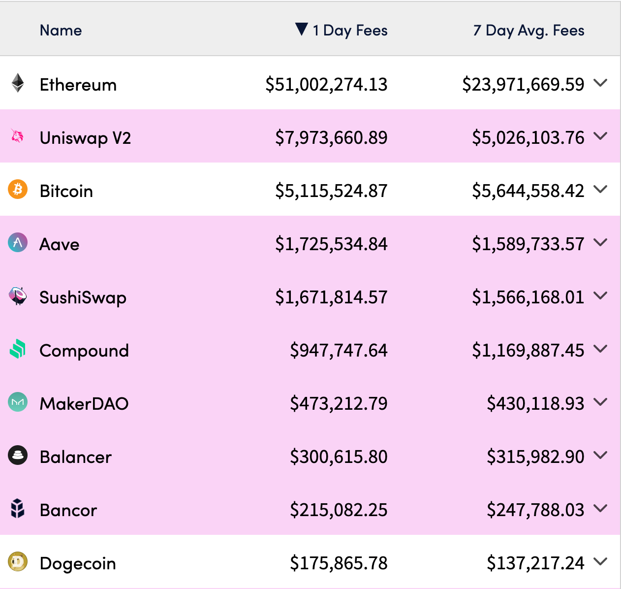 Of course, Uniswap didn’t quite overtake Bitcoin by far - Bitcoin still exceeds Uniswap in fees when you consider the 7-day average. But the fact that a single protocol on Ethereum surpassed Bitcoin in fees is a statement!
